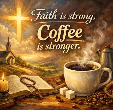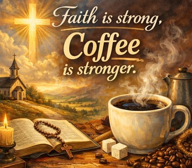 Devotional Thought: We all know the feeling: eyelids heavy, brain fog thick, and all you want is that glorious first sip of coffee. And yet, right there on your mug or in your morning planner, you see the phrase: "Faith is strong, coffee is stronger." You laugh, because… well, it’s kind of true—at least it feels that way before 9 AM. But this playful quote actually invites a deeper reflection: What do you depend on to get through the day? What’s your real source of strength? Let’s Break It Down: Coffee may boost your body, but only God can steady your soul. You might wake up by reaching for your phone, but how often do you first reach for the Word? You plan your day with to-do lists,
